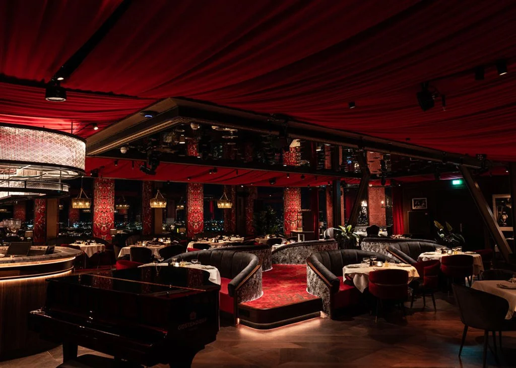 Ventuno was giving Studio 54-esque interiors and we loved it. You can party or dine al fresco on two outdoor terraces, each offering panoramic views of Amsterdam - stay until the sun goes down for it to turn into a nightclub with retro party vibes.