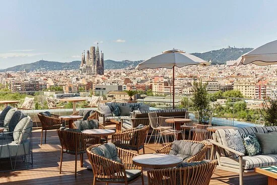 A sun-drenched hang out in the cool art district of Poblenou. Opening all day, grab a Gin and Tonic the size of your head from the bar and hang out pool side all evening, enjoying the pink hued sunsets whilst the DJ plays cool music into the night. The 360° panoramic views from up here at stunning.