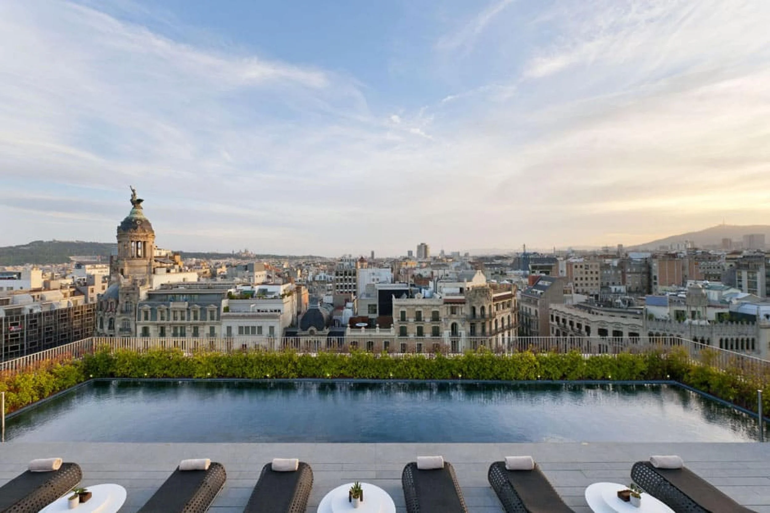 Right in the heart of the city, on top of the 5-star hotel Mandarin Oriental Barcelona you’ll find Terrat: a magical 360° roof terrace, Peruvian restaurant and large, luxurious rooftop pool. If you are searching for great views, rooftop swimming pools and good food in a romantic setting, this is the perfect roof terrace in Barcelona.