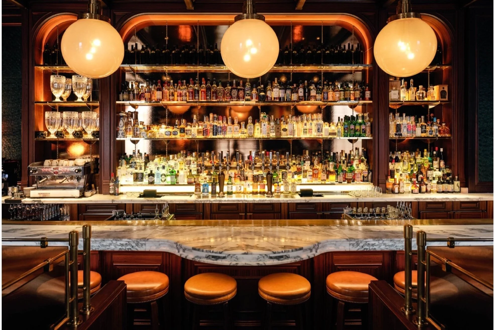 Our number one spot, located within the Rosewood London hotel, is designed with a distinct artistic flair: we love the unique art collection of the caricatures, the dim lighting and the lounge-like seating. This is an intimate atmosphere, perfect for relaxed conversations or enjoying a quiet drink next to the cozy fireplace. Catch live jazz in the evenings for soulful melodies and smooth rhythms - we love a live music vibe.