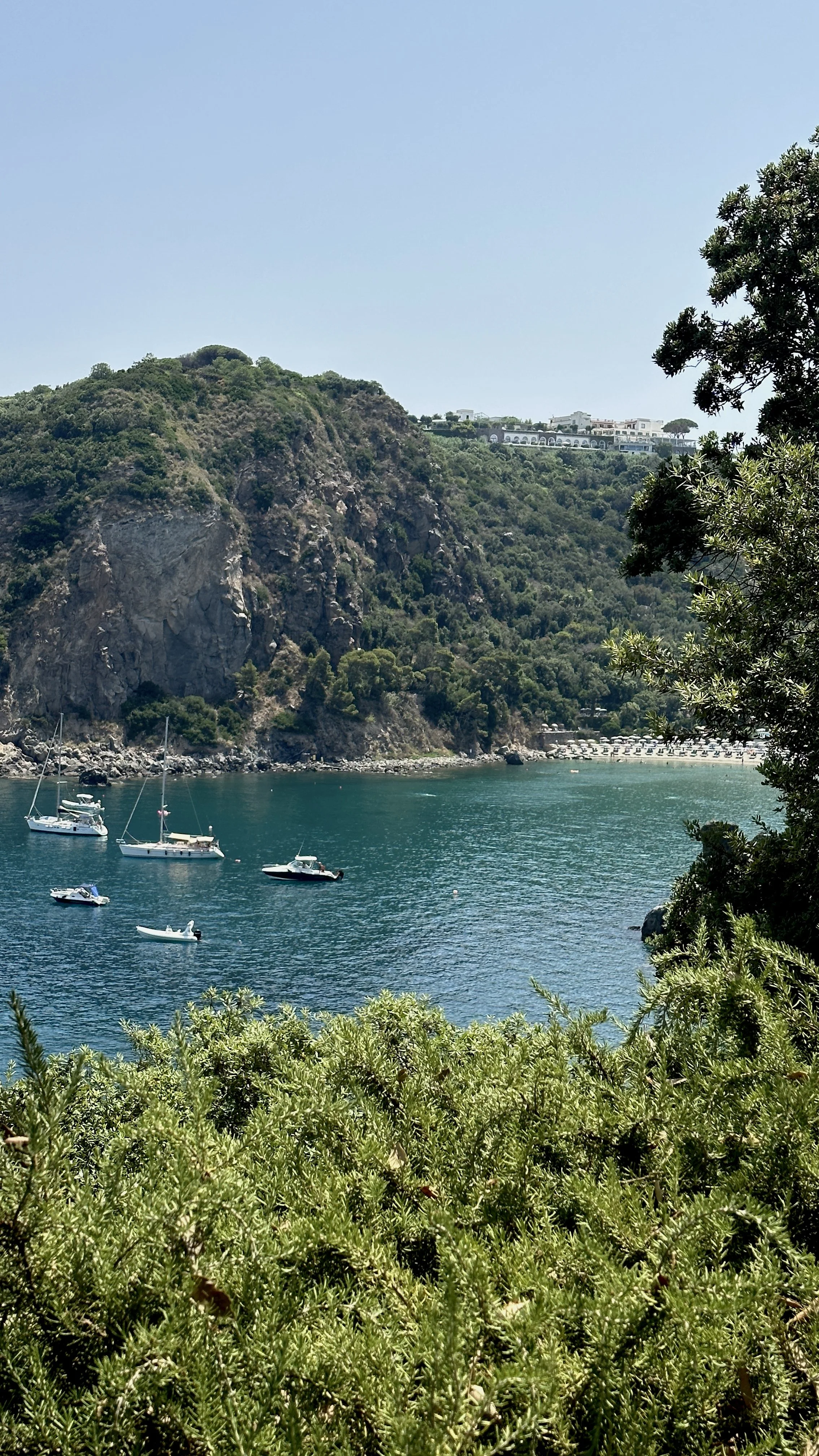 Beaches: The beaches in Ischia boast crystal-clear waters, golden sands and scenic coastal backdrops, providing the perfect setting for sunbathing, swimming, and enjoying the island's serene atmosphere and authentic Italian charm. One of our favourites is the stunning Baia di San Montano, a hidden bay framed by rugged cliffs and nestled on the island’s northern coast, known for its thermal hot springs that flow into the sea. It’s mainly used by the locals which means it’s often quiet and spacious and just pure bliss.